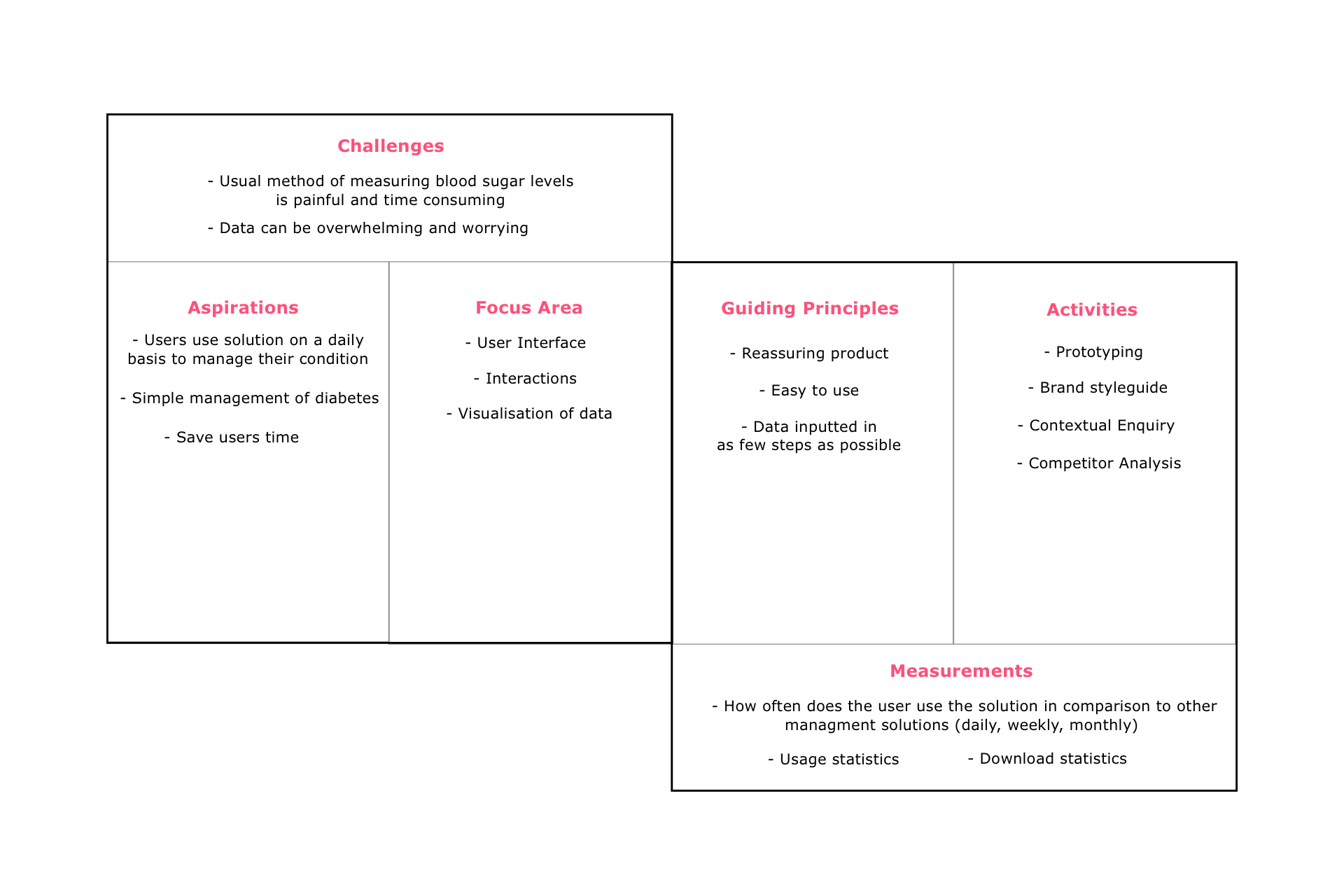 Diabetes is a complex condition and is very difficult to manage. I set out to understand what living with the chronic condition actually entails and the potential opportunities for a product aiming to help manage the disease.