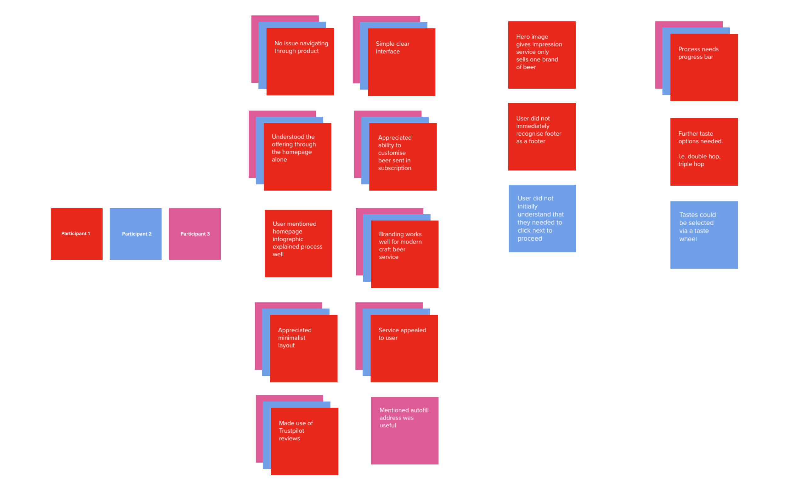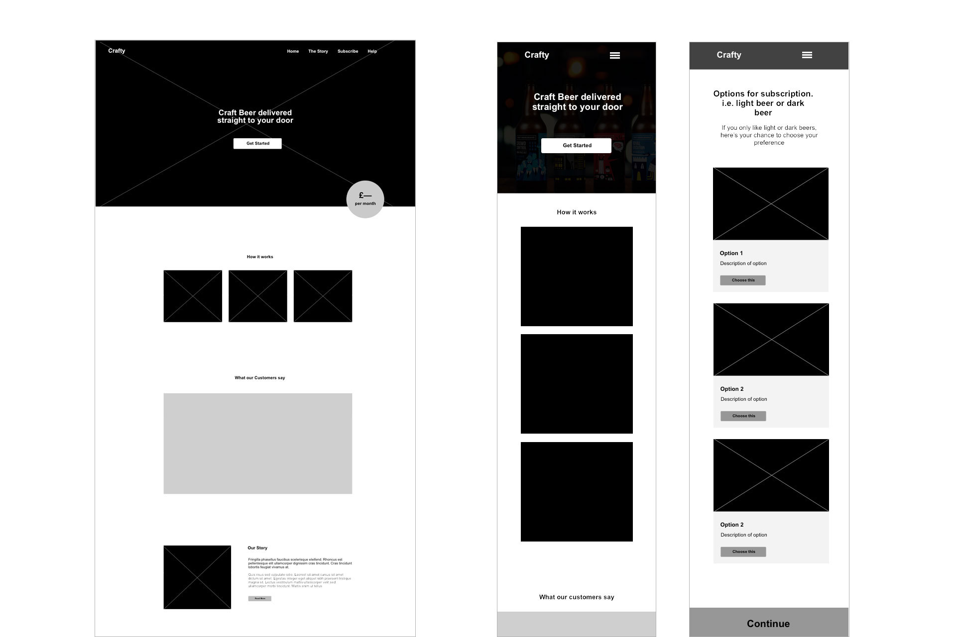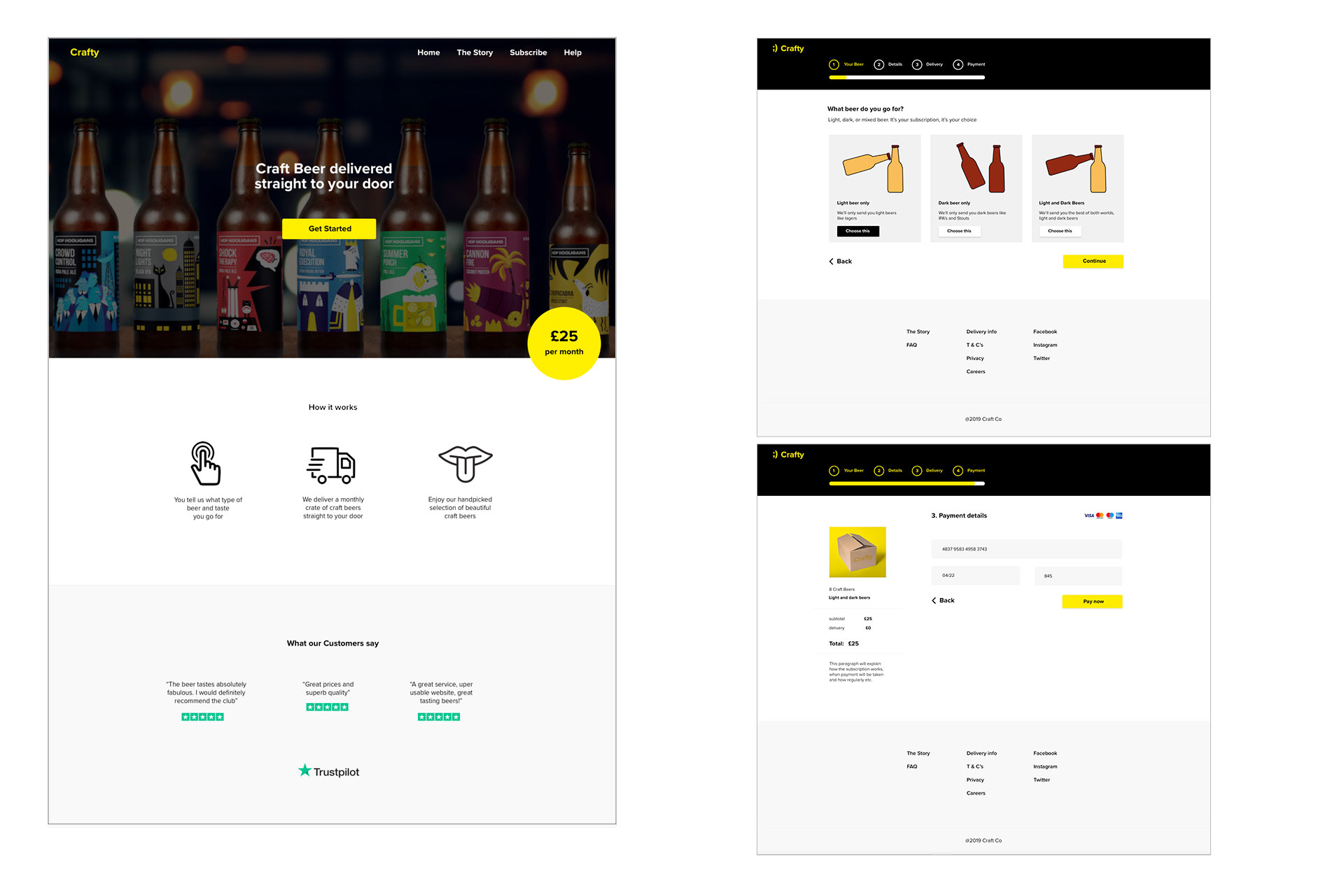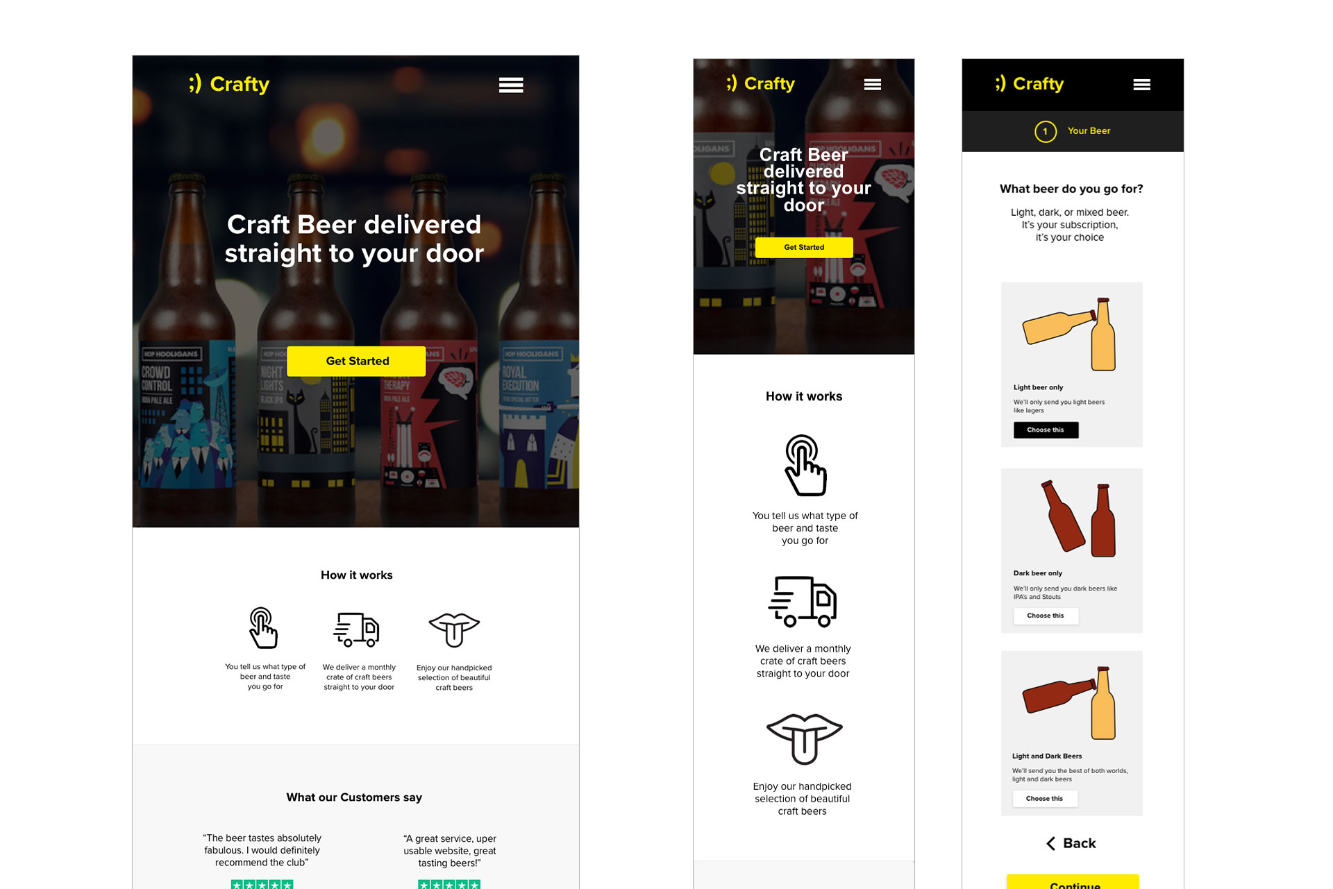 I designed the responsive UI in Sketch. In keeping with the modern and independent image, I strived to keep interface elements minimalist in look and function. Only slight styling such as drop-shadow were used and I kept to the two brand colours (yellow and black). In addition to this, illustrations would be used across the product instead of stock photography. I created an extensive high fidelity prototype in Invision and conducted remote testing with three participants. This data was used to continue iterating and improving upon the design. Using the results of the testing, I moved forward and made changes, primarily focusing on designing a progress bar to indicate progress through the process and other ways to represent taste options including a taste wheel. I then tested these changes with further users (in the same format as the previous testing). Craft Beer is a relatively new market and I discovered that its customers have a very different mindset from the average consumer. While most beer drinkers would be attracted to low prices and a tasty product, craft beer drinkers are wanting to challenge themselves and their taste buds. Craft breweries and any brands in that market need to consider a complex mix of social needs, psychology and taste. A craft beer brand needs to appear local but innovative, and offer a beer which tastes good but also unique. If it can do all this, it's on the way to success. If I was to take this concept on as a start-up, I would continue iterating on the design, refining features and screens to improve upon usability. While the prototype was useful for testing and generating qualitative data, we are left with many questions unanswered. Does the product appeal to a wide enough market and how can the design be optimised to improve sales? Eventually, early versions of the product / service should be tested and launched, we could then use more qualitative methods of research including heatmaps and analytics.Designing a Craft beer subscription website