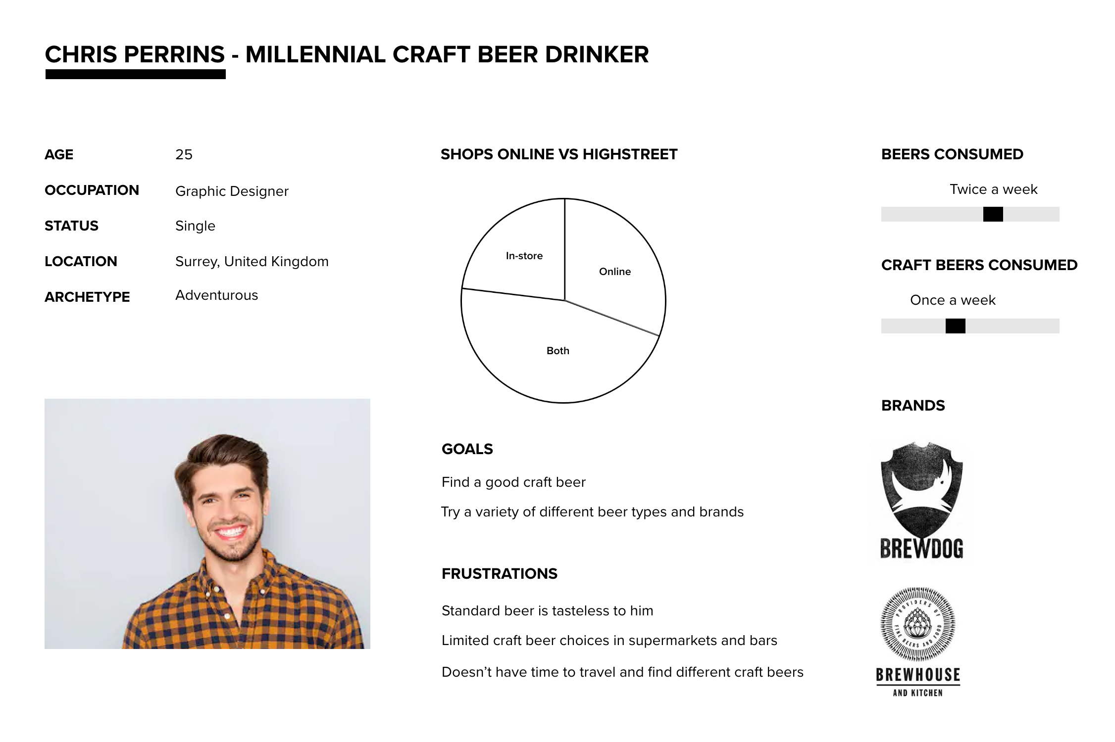 Strategy, Research, UX Design, UI Design, Branding, Copywriting 60 hours: Pen & paper, Sketch, Google forms, Invision Craft beer is a rapidly expanding product and you only need to walk into a local craft beer pub to understand that it has a hype that traditional breweries haven't quite been able to attain. While mass scale manufacturers focus on economics and 'drinkability', craft breweries set out to focus on taste and range. What appears to be evident is that craft beer drinkers love to explore a full range of beers and tastes, not satisfied with the few options that are currently on offer in shops and supermarkets. However, is there a market for an online subscription service and will my chosen target market of millennials be appropriate?